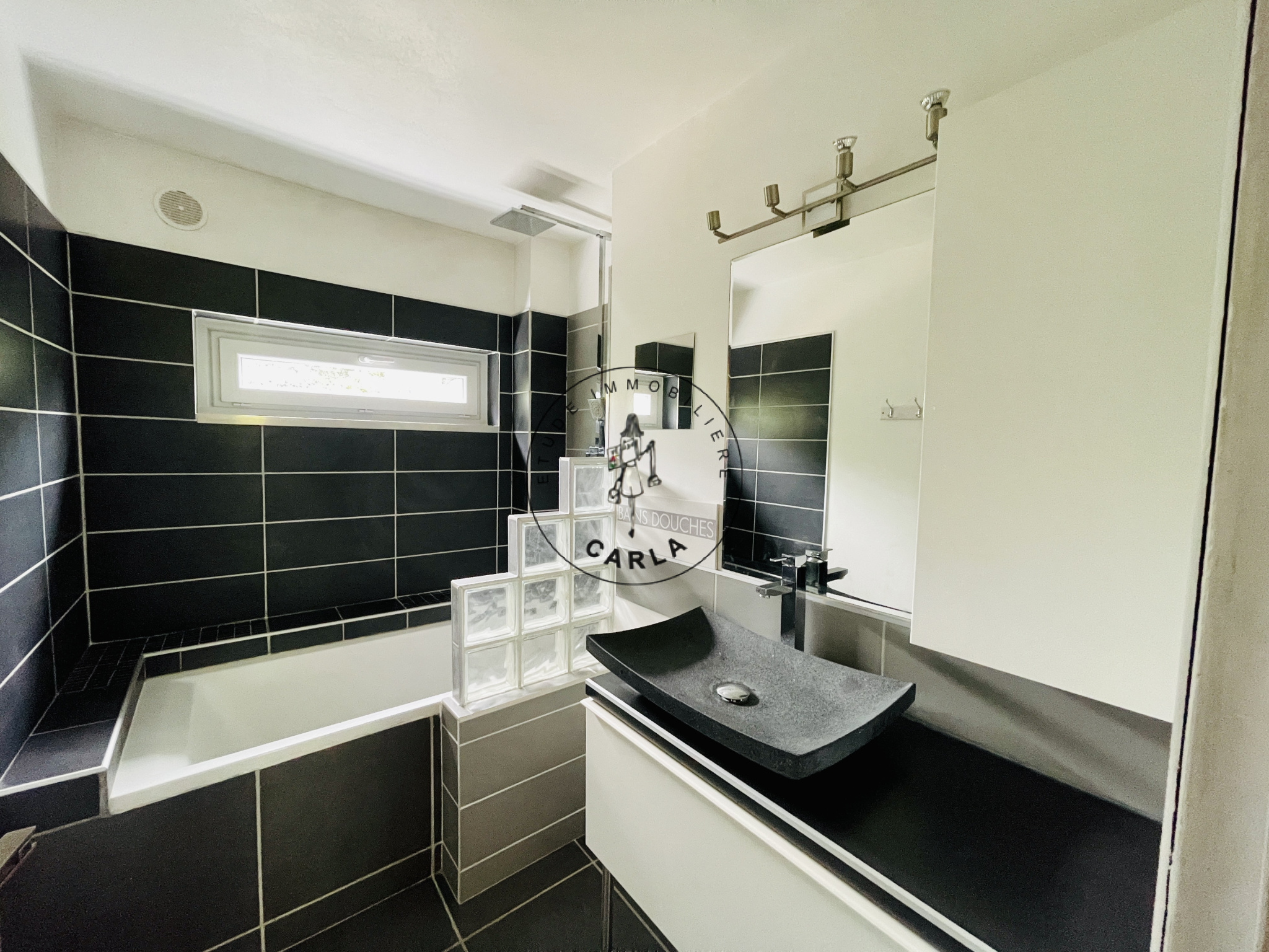 salle de bain - note publique : Carrelage, baignoire, 1 vasque,